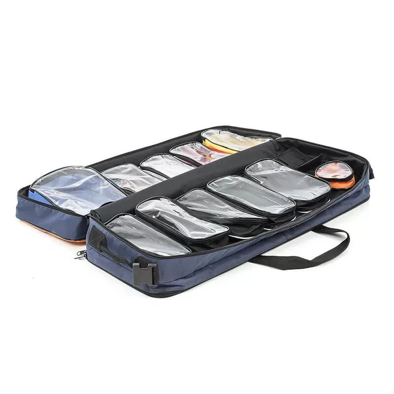 La bolsa está hecha de nylon, un material resistente que es 90% impermeable. De esta forma, se pueden realizar rescates incluso en ambientes lluviosos sin dañar el material presente en el interior de la bolsa. Es fácil de transportar y fácil de manejar, ya que tiene una correa para la mano, así como una cremallera y dos deslizadores para una apertura total.