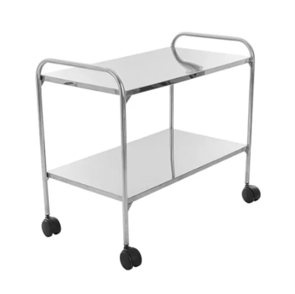 A mesa auxiliar em aço inox 60x40x80cm com rodízio foi pensada para a preparação de medicamentos.