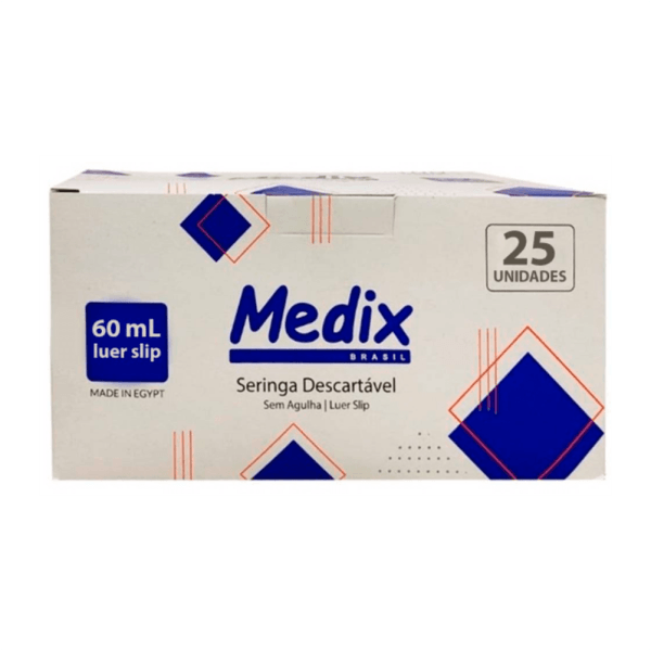 A Seringa Hipodérmica 60ML sem Agulha Luer Slip cx 25 un. é comercializada para hospitais, enfermarias, laboratórios, consultórios médicos, veterinários e clínicas odontológicas.